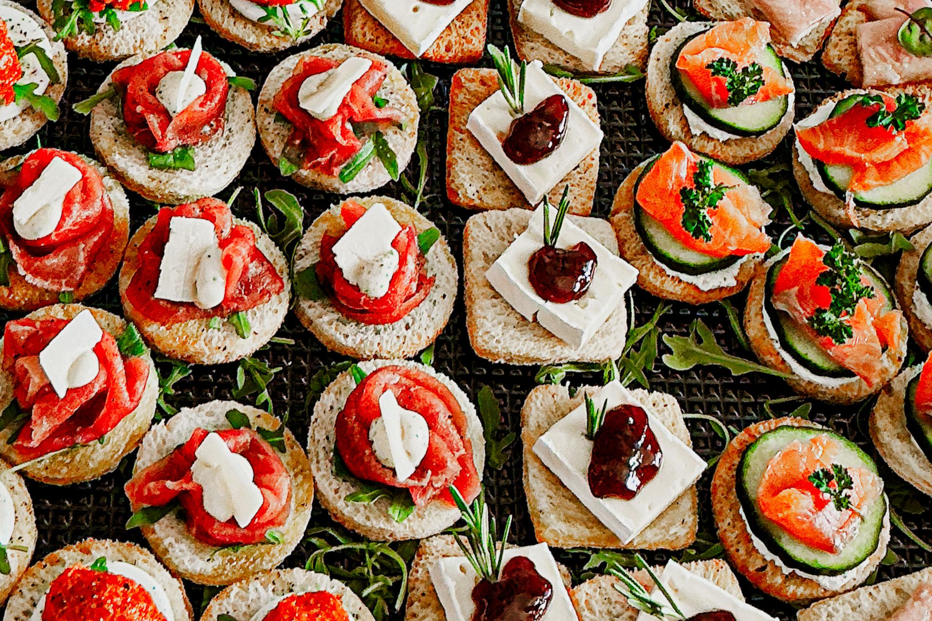 80 canapés verdeeld over 2 schalen.